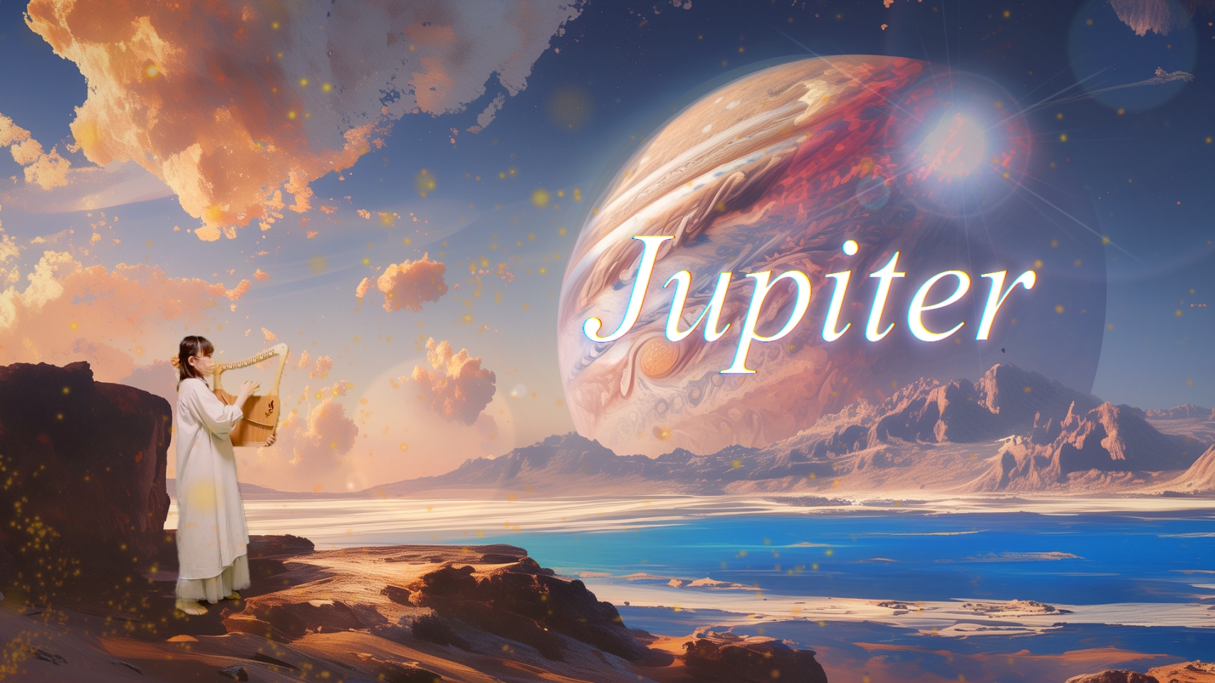 今回も動画の背景はAIで作ったのですが、ジュピターって木星、宇宙というイメージはあるけれど、宇宙でライアー弾いているイメージでもないし、木星を見ながら弾いているイメージだ!と思って作りました。
